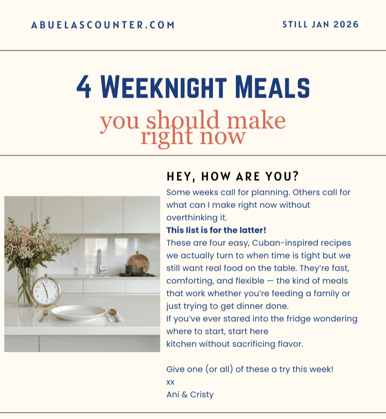 Welcome to our Sunday Dinner series. Each Friday we will feature a recipe that you can make on Sunday to feed your family and your soul :) Hi friend, If you’re already thinking about what to cook for Sunday dinner, let me make it easy for you. This week’s Sunday dish is Arroz con Pollo — a classic Cuban comfort meal that brings everyone to the table without a lot of fuss. It’s one of those recipes that fills the house with warmth while it cooks and tastes even better the next day (yes,...